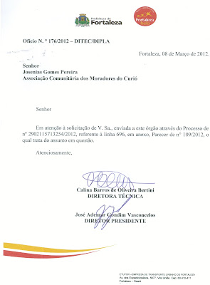 Mais documentos da ETUFOR nos dá o devido crédito pela nova linha de ônibus